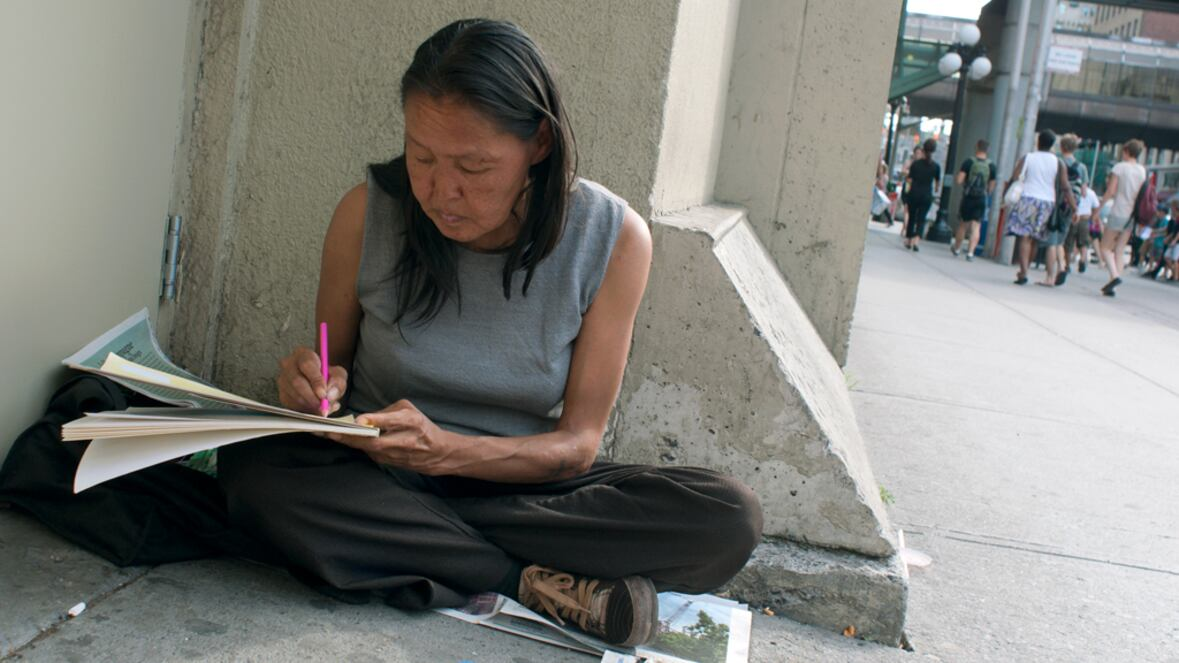 Annie Pootoogook works on her art on July 10, 2013, in Ottawa. The investigation into her 2016 death has stalled, sources tell CBC News. (Alexei Kintero)