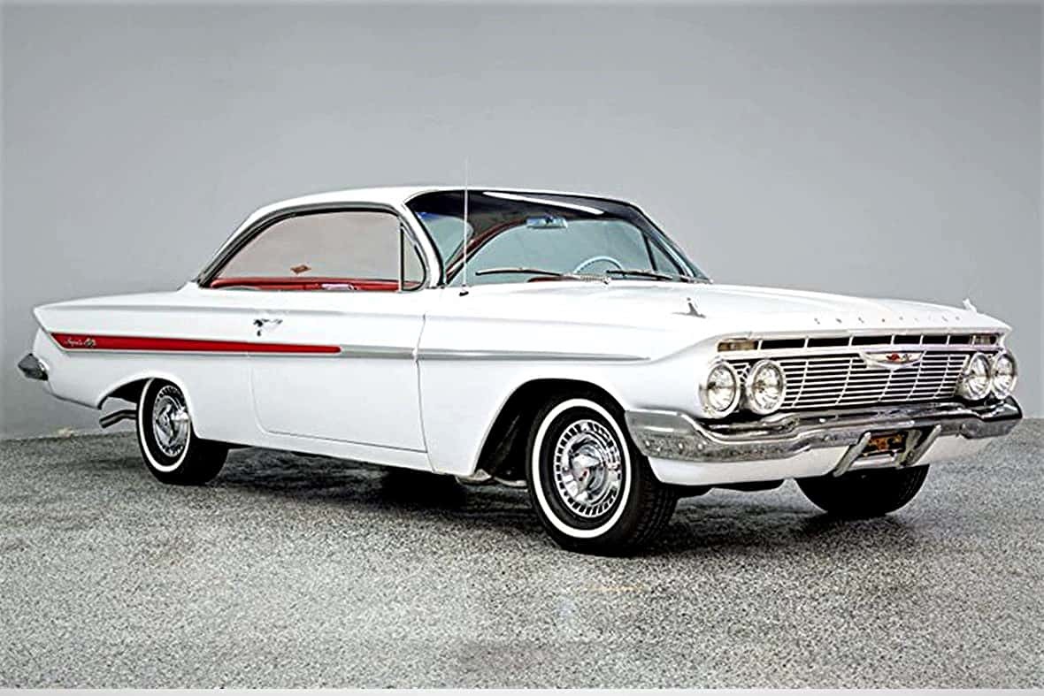 The big flag badging on the grille and trunk lid was specific to only 348 cars, they came in 240 HP, 280 HP and the high horsepower 350 HP models. In late 1961 Chevrolet introduced the 409. That same year, the windshield wipers swept in the same direction. For the Silo, Robb Price.