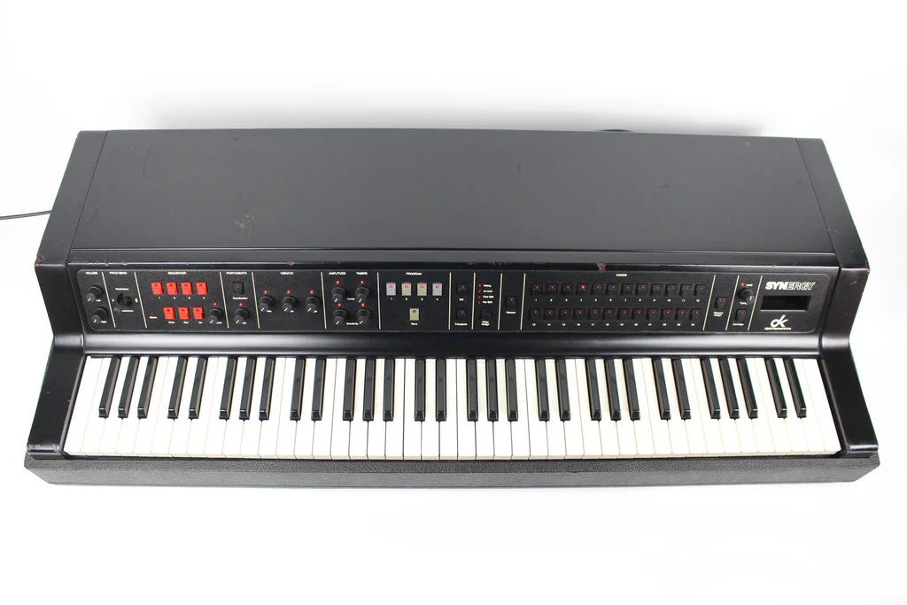 The Digital Keyboards Inc Synergy II+ is a digital additive/FM synthesizer that sounds like no other. Somewhat similar to the extremely popular Japanese Yamaha DX7, its tone is mellower and warmer. The Synergy appealed to many performers and composers in that it was, like the Synclavier (one of Michael Jackson’s famous early synthesizers) , made in USA.