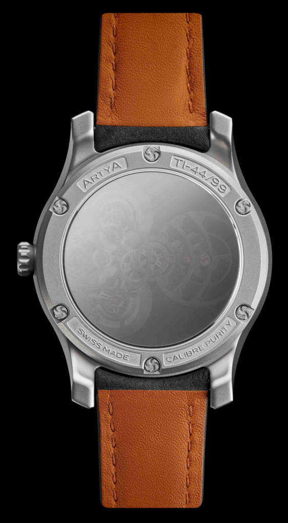 Limited Edition of 99 pieces Case Grade 5 titanium, satin-finished, mirror-polished lug-to-lug contour Transparent or black DLC protective coating Diameter40 mm Thickness13 mm Water resistance50 meters Caseback Screw-in, engraved, fitted with a one-way mirror Crystal Sapphire, triple ant-reflective coating, laser-engraved chapter ring Hands Brushed and diamond-polished Crown Engraved with the ArtyA signet Caliber ArtyA Purity Stairway To Heaven HMS in-house movement Winding Manual Indications Hours, minutes, and central seconds Power reserve Minimum 72 hours, thanks to twin parallel barrels Frequency 4 Hz (28,800 vph) Finishes Fine regulation through precision adjustment of inertia blocks on the balance wheelMicrobead-frosted minute wheel train and balance bridgesHand-chamfered edgesPolished mainsprings to optimize friction in the barrel assemblies Strap Alligator or grey nubuck leather Buckle ArtyA pin buckle, available with or without black DLC coating Swiss Made Entirely designed and crafted between Geneva and the Swiss Jura Price (excluding VAT)Titanium & Black Titanium CHF 25,900 (reference price) EUR 27,900 (subject to exchange rate) USD 29,900 (subject to exchange rate) CAD 42,754 Also available with transparent, hued or NanoSaphir case From CHF 44,900 (reference price) From EUR 47,900 (subject to exchange rate) From USD 50,900 (subject to exchange rate) VERSION FRANÇAISE