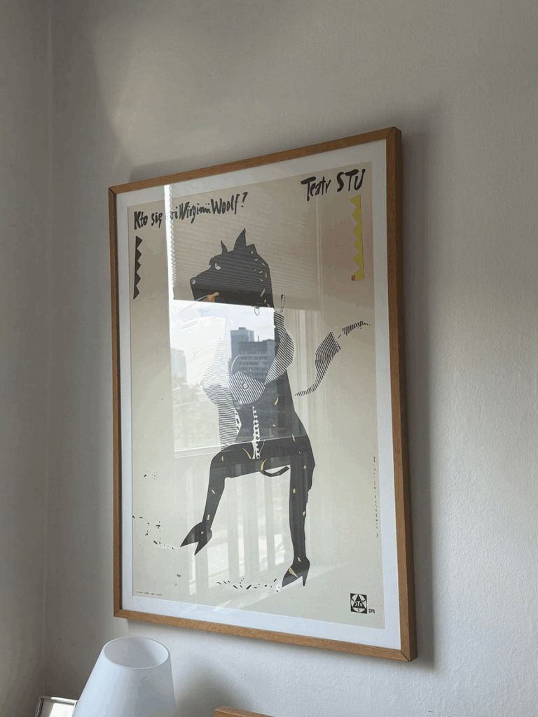 Years and years ago, on a trip to Cincinnati for the FotoFocus Biennial, I picked up this Polish theatre poster for a production of Who Killed Virginia Woolf. I love the history of Polish film posters, which have a distinct style that circumvented strict rules of the Stalinist regime around art making (you can read more about the history of that here). I love the weirdness and darkness of the posters, and with this particular poster, I love(d) the deeply pigmented pink.