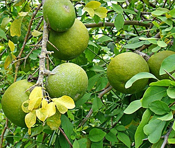 • Bael. Commonly known as “golden apple”, this fruit-bearing tree indigenous to the hills and plains of central and southern India has numerous uses. The fruit promotes healthy digestion and is used medicinally to treat such conditions as diarrhea, dysentery and cholera. The leaves, roots and bark of Bael also have medicinal value.