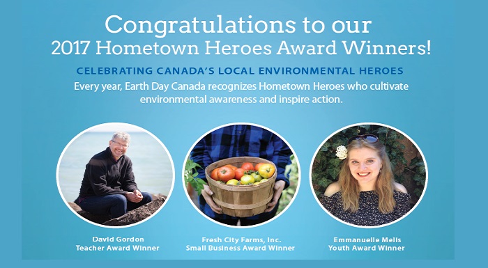 Earth Day Canada is thrilled to announce the five winners of our Hometown Heroes Award Program 2017. This program recognizes and celebrates environmental leaders at the community level with a Youth, Individual, Teacher, Group and Small Business award.
