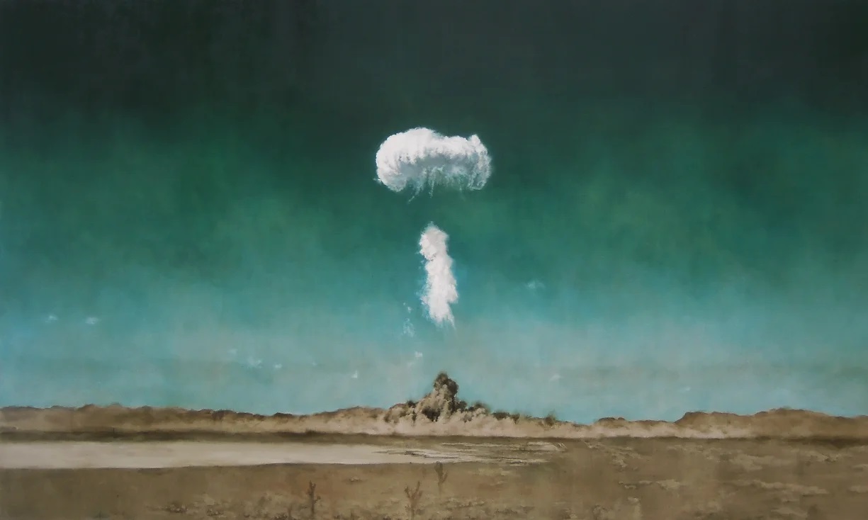 Kirsty Harris depicts the most iconic man-made event that might take place in a landscape: the detonation of the atom bomb.