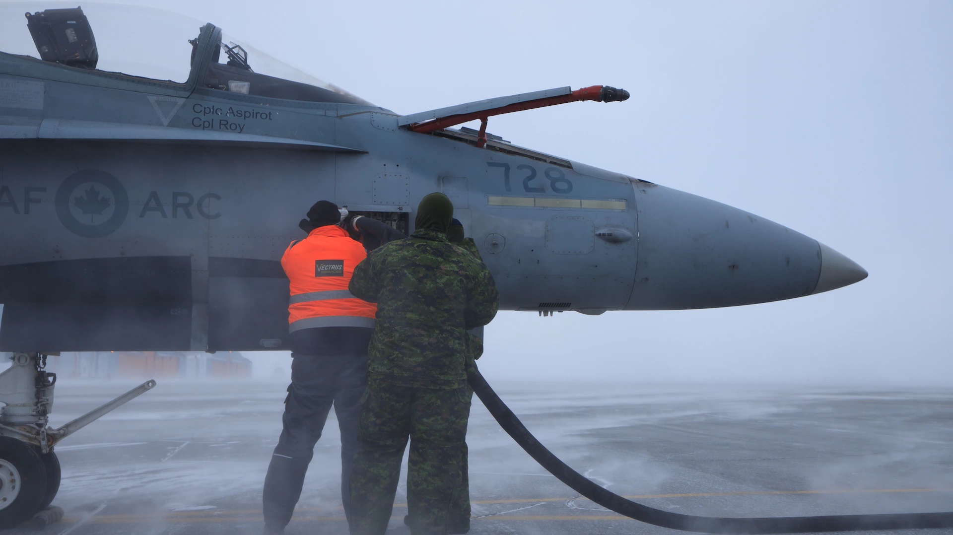 Another operation saw Canadian CF-18 fighters operating from northern airfields to intercept aircraft role-playing as threats. Fighter aircraft were supported by Royal Canadian Air Force and United States Air Force KC-135 air-to-air refuelers.