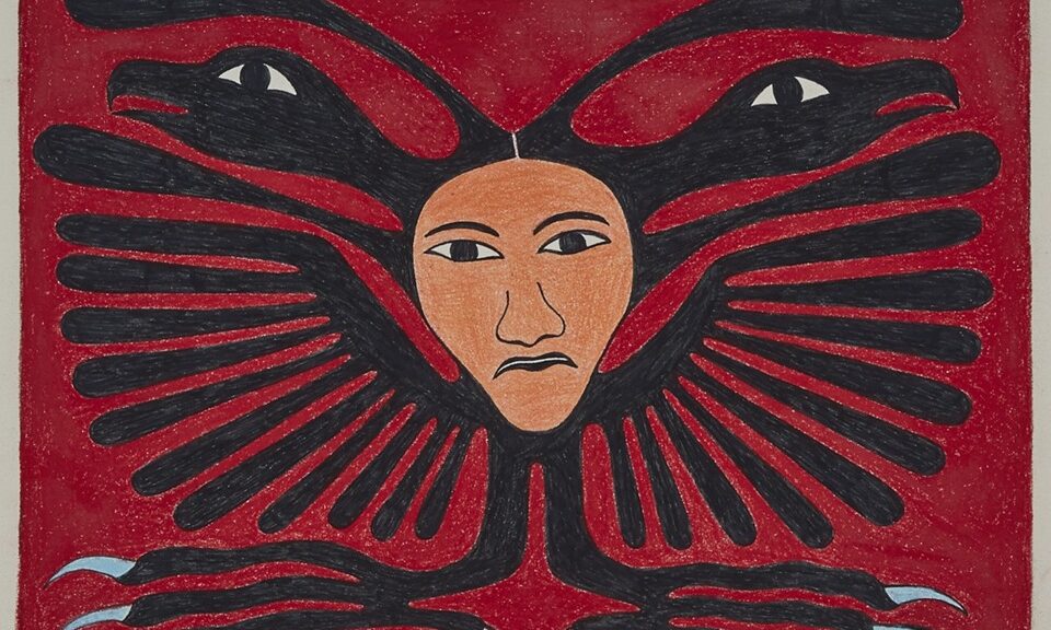 Feature Image: Kenojuak Ashevak. “Untitled (red woman/birds/wings/feet),”Drawing, pencil and ink 10x14in, 25.4×35.6 cm. Waddington, 9/18/20. René Balcer and Carolyn Hsu-Balcer Collection, Gift of René Balcer and Carolyn Hsu-Balcer, 2024