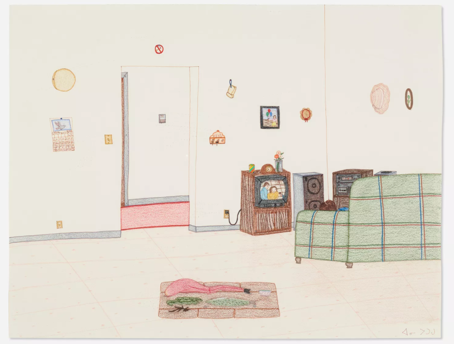 René Balcer and Carolyn Hsu-Balcer said, “One of the greatest challenges the Inuit face vis-à-vis the southern world is invisibility. At best, the Inuit and their brethren in the Circumpolar region are an abstraction to the rest of the world, glimpsed mostly through the distorted lens of pop history. At worst, the reaction the Inuit get when meeting non-Indigenous people is, ‘Oh, I thought you all died off years ago.’ It is our modest hope that this collection will demonstrate that the Inuit and their culture are very much alive and very much engaged in the modern world (to wit, see the following image of Annie Pootoogook’s Watching Jerry Springer from 2003). My wife, Carolyn, and I are very grateful to The Met for accepting the collection and committing its vast resources and reach to showcase to the world the creative brilliance, wisdom, and humor of Inuit artists.”