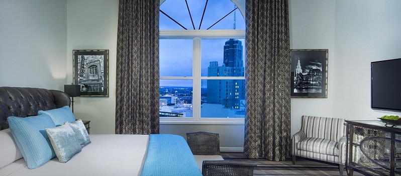 The Hyatt Regency’s “Huron Suite” with a splendid downtown view.