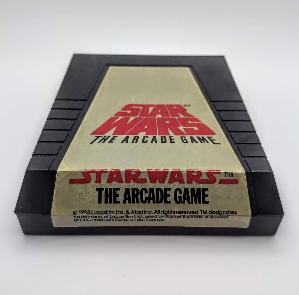There are collectors of early arcade games, there are collectors of early Star Wars cartridges and video games, and then there are collectors who just buy any of the early logos used on merchandise. Because of the label, this cart has great cross-collector appeal, and while I haven’t tested it for some time (used to play it with my oldest, who is now off to college), here is a screenshot I took when we played it on our home projector. I have decided to pass this beauty on and so it is for sale and I am happy to tell you more about this totally awesome cartridge.