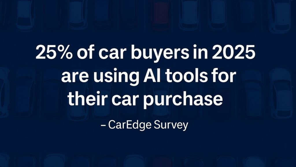 Artificial intelligence is changing the way North Americans buy cars, and it’s a transition that is happening quickly. In the first-ever survey of its kind, CarEdge asked 500 car shoppers if they’re using AI tools like ChatGPT to research, compare, and negotiate during the car buying process. The results confirm a major shift is underway. One in four car buyers in 2025 are already using AI tools to gain an edge, and future buyers are even more likely to embrace these technologies.