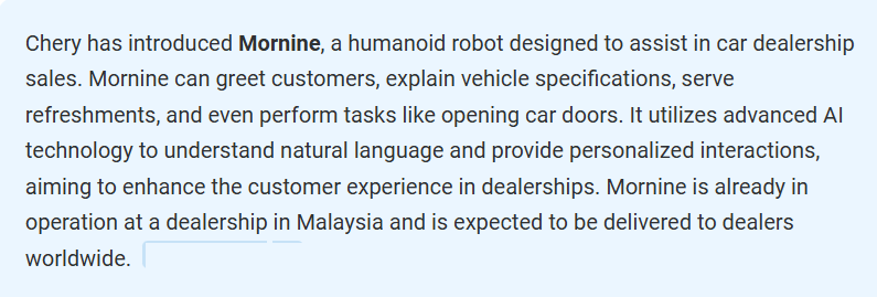 Mornine- AI powered car dealership robot.